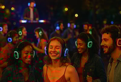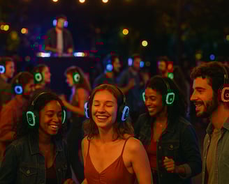 Le nostre cuffie wireless Silent sono la soluzione perfetta per eventi innovativi e coinvolgenti, come silent party, silent workout e meeting immersivi. Ogni partecipante può scegliere tra più canali audio trasmessi in contemporanea, garantendo un’esperienza personalizzata senza disturbi esterni. Facili da configurare e con autonomia elevata, le cuffie Silent trasformano qualsiasi spazio in un’area evento discreta, dinamica e perfettamente gestibile.