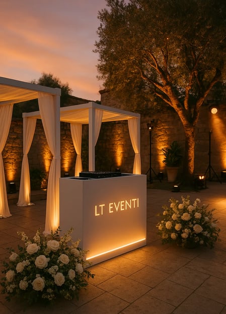 LT EVENTI è l’anima tecnica e creativa dietro eventi straordinari. Da anni accompagniamo wedding planner, aziende e privati nella realizzazione di momenti unici, offrendo un servizio impeccabile che unisce innovazione, estetica e funzionalità. Specializzati in service audio, video e luci, trasformiamo ogni spazio in uno scenario suggestivo, dove atmosfera e tecnologia si fondono con naturale eleganza.